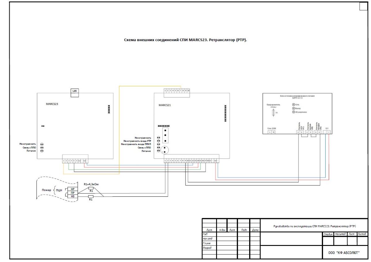Перечень оборудования системы передачи извещений о пожаре: СПИ ППО "MARCS", РИП 12 исп.14.